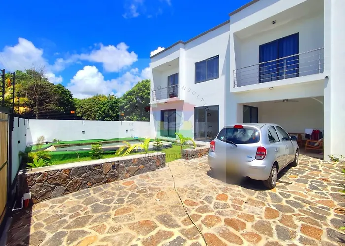 Situé à environ 10 minutes en voiture de l'Aquarium de l'île Maurice, Villa avec piscine à Trou-aux-Biches invite les clients à se détendre sur une terrasse.